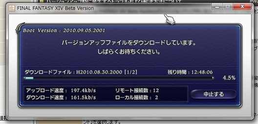 クライアントをダウンロードするもバージョンアップファイルのダウンロードになんと『12時間』と表示されビックリ!